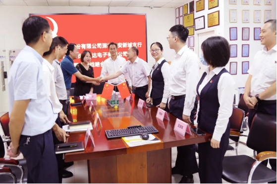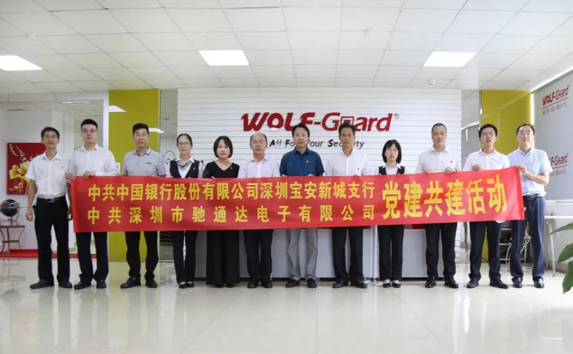 党支部隆重举行党建结对共建暨全面战略合作签约仪式。出席本次签约仪式的中行领导有:宝安管辖支行钟俊副行长,新城支行李克华行长,新城支行陈莉副行长,新城支行黄程林副行长等;出席本次签约仪式的驰通达集团领导有:集团董事长、南山区人大代表万腾驰,集团行政总裁、党支部书记莫蓉,轮值ceo、法人代表熊剑,财务部经理陈晓东等支委成员。中行领导对本次党建共建活动给予高度重视和大力支持,并对受疫情影响导致部分出口业务受阻的企业给予大力的授信额度支持,对驰通达集团日常经营和平稳发展提供了很大的帮助,此行深入基层企业传经送宝更是难能可贵,万腾驰董事长对此表示大加赞赏和感谢!
