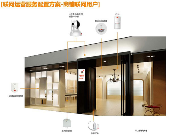 无线红外探探测器:安装在店铺需要监控位置,当人非法进入时,红外探测器触发主机报警。